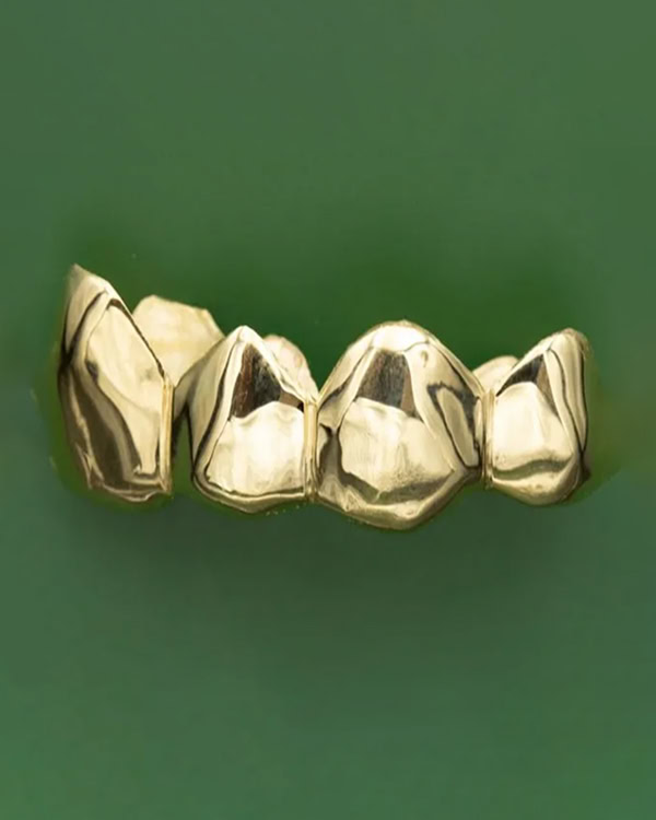 Built using a high-accuracy impression of the mouth, the gold pieces are designed to rest securely across the front four teeth. The result is a streamlined, visually striking accessory that blends well with casual looks or layered jewellery combinations.